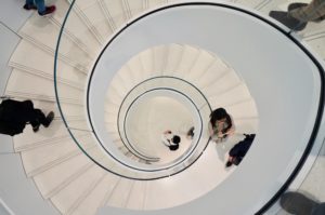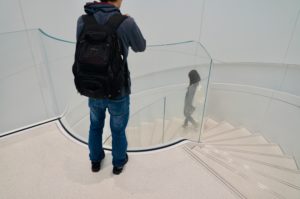 螺旋階段は、改装前の2階から3階まで延長されました。また、踏み板はガラスから白い人工大理石へと変更されています。全体的に白基調となっていて、目に優しい印象です。