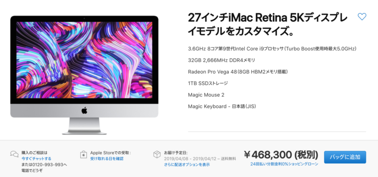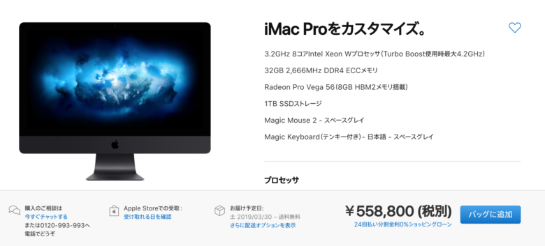 iMac Proのベースモデルに合わせ、32GBメモリ、1TB SSDストレージという大体同じ構成にするとそれぞれの価格は、iMac Proが558,800(税別)、iMac 5K(27インチ)が468,300(税別)になる。