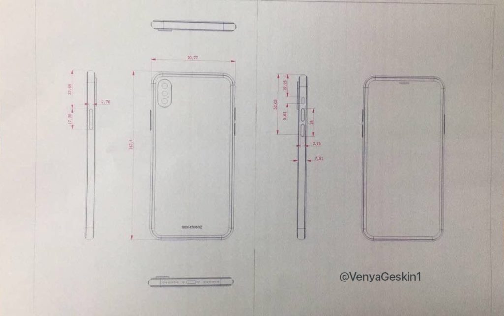 iPhone8の設計図と思われる画像をBenjamin Geskin氏が公開しました。この画像からは、前面パネルに虹彩認証用の3Dカメラと思われるものが確認できます。